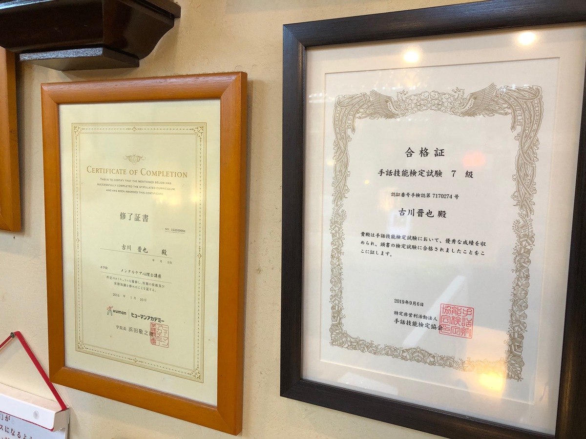 メンタルケア心理士の勉強をし、修了証書を取得しております。