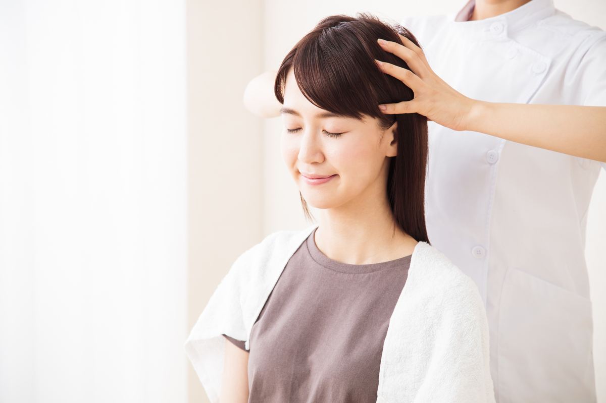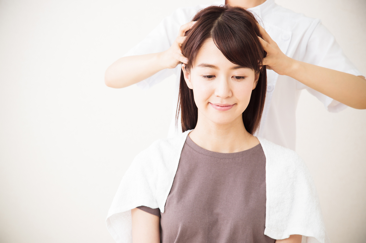 理容室だからできる手技による経絡を用いた頭皮揉捻法